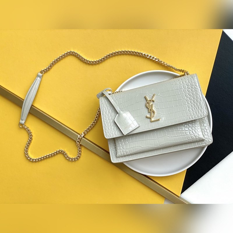 YSL nagy naplemente replika táska 442906 fehér krokodil mintás lánc kereszttest