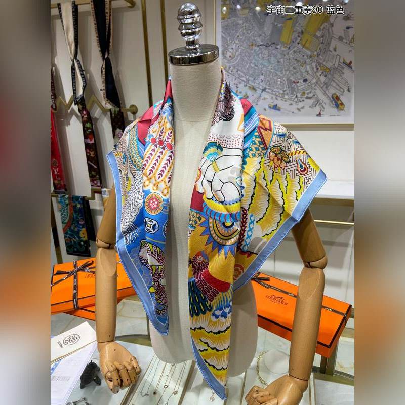 HERMES Cosmic Duet 90 selyem twill sál 100% tiszta selyem