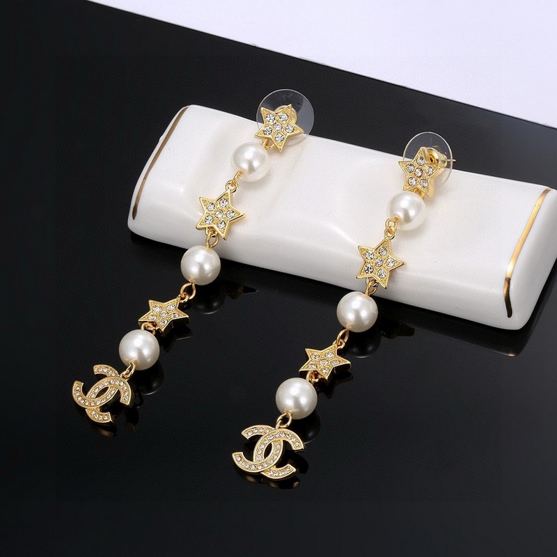Chanel Star Long Pearl fülbevaló strasszos Design klasszikus luxus