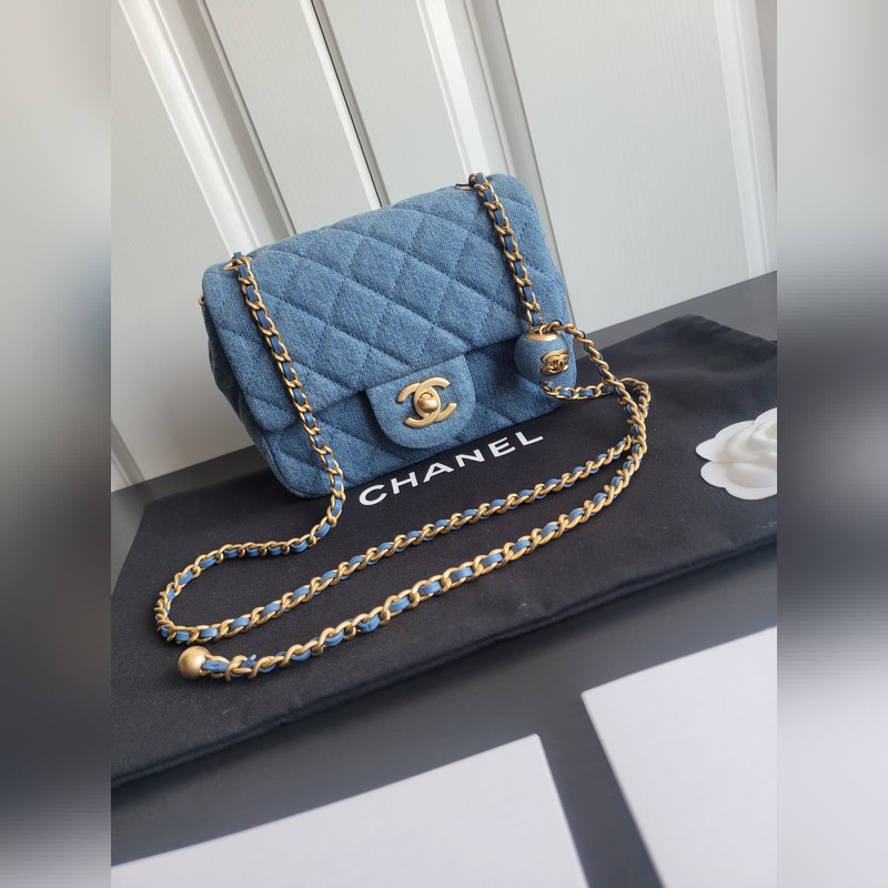 Chanel 22C Denim CF fémgolyókkal, importált vízben mosott, kiváló minőségű hardver