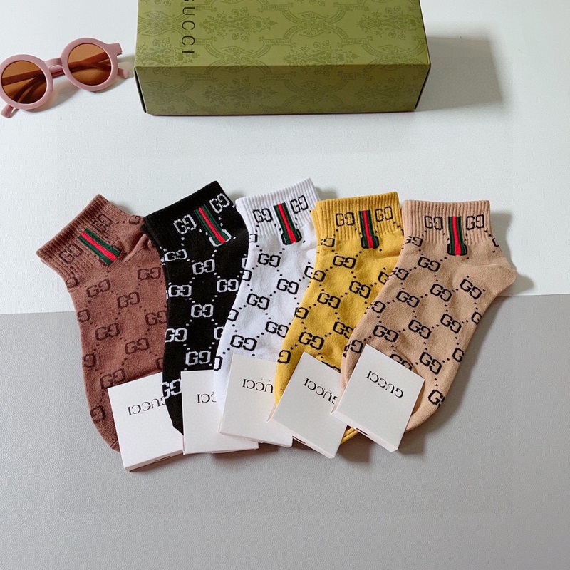 GUCCI 2024 rövid pamut zokni, 5 pár tűzmintás
