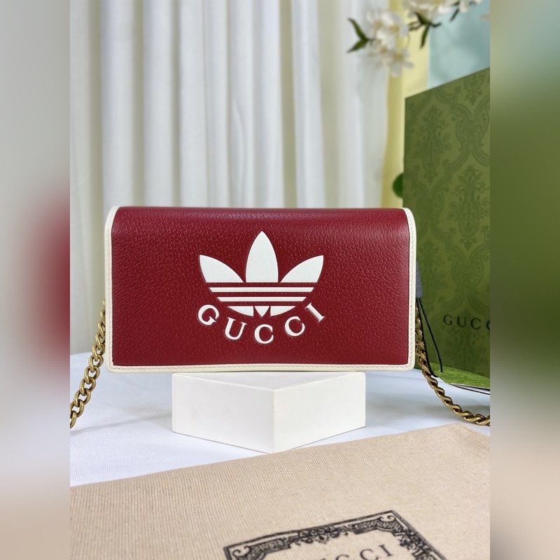 GUCCI Co-branded Series 621892 piros bőr lánc pénztárcával