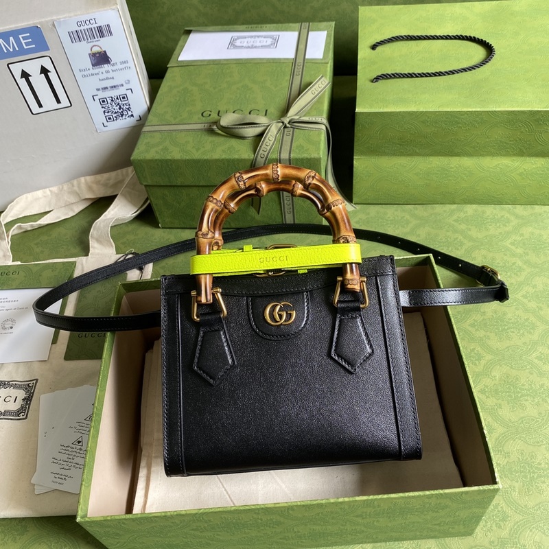 Gucci Mini Tote Replica táska bambusz fogantyúval és dupla G tartozékokkal, eredeti zöld dobozos csomagolással