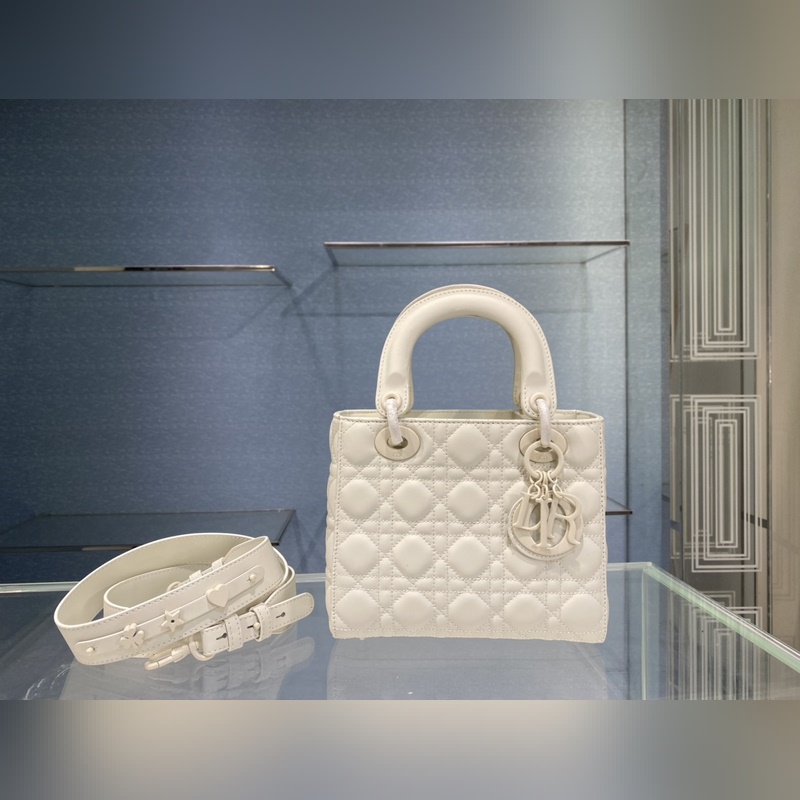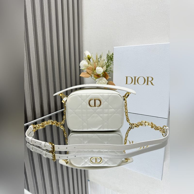 Dior Caro kis fehér felső fogantyús fényképezőgép replika táska hiteles minőség