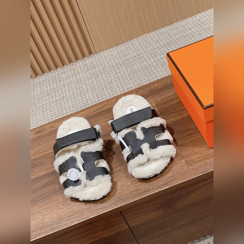 Top Hermes gyapjú báránybőr papucs A+ minőség