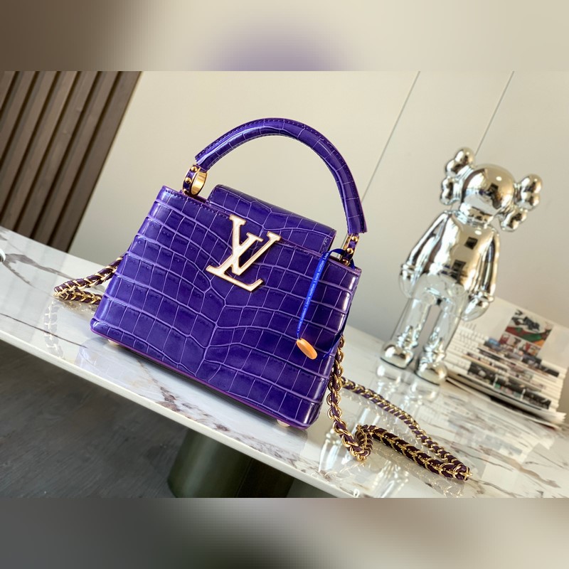 Luxus N81190 ametiszt fényes krokodil mintás szövésű arany csat capuc