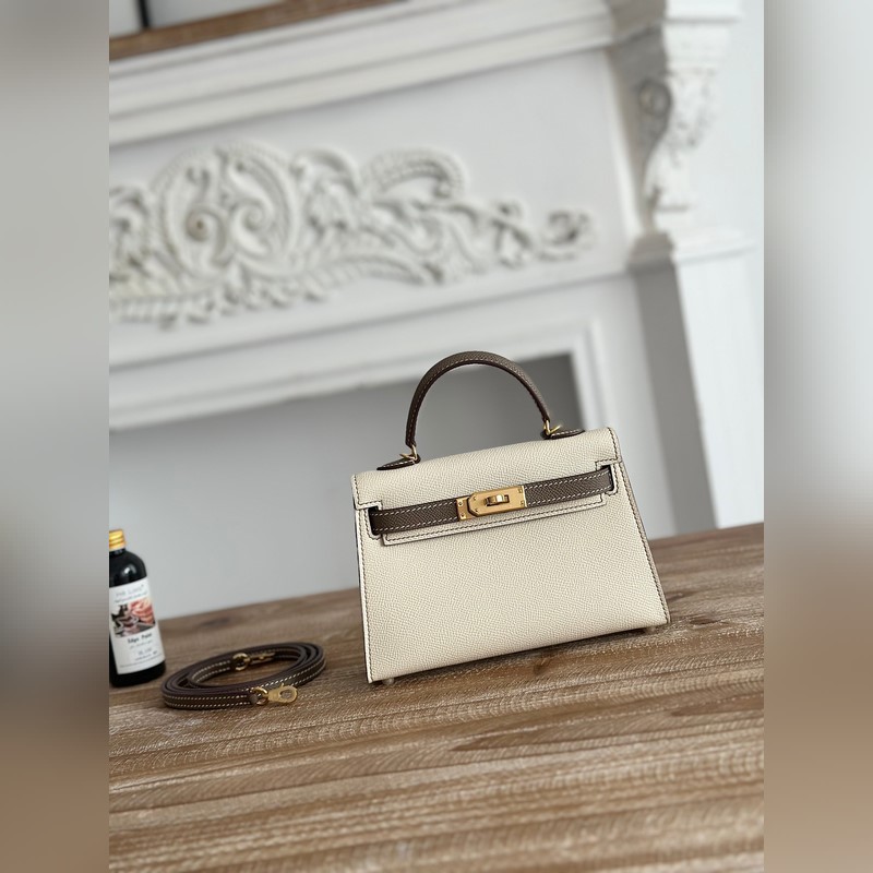 Kelly II Mini Replica Bag Milkshake fehér és elefántszürke Epsom bőr arany hardver