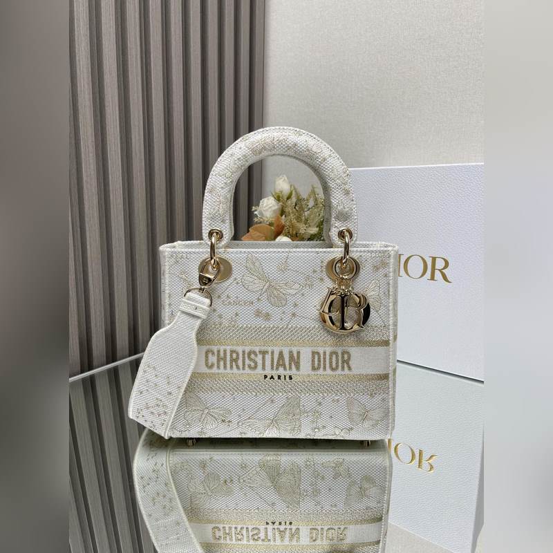 Kiváló minőségű hímzett Lady Dior replika táska arany pillangóval