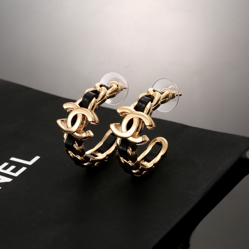 Chanel klasszikus fekete bőr dupla C fülbevaló sokoldalú divatos kiegészítő