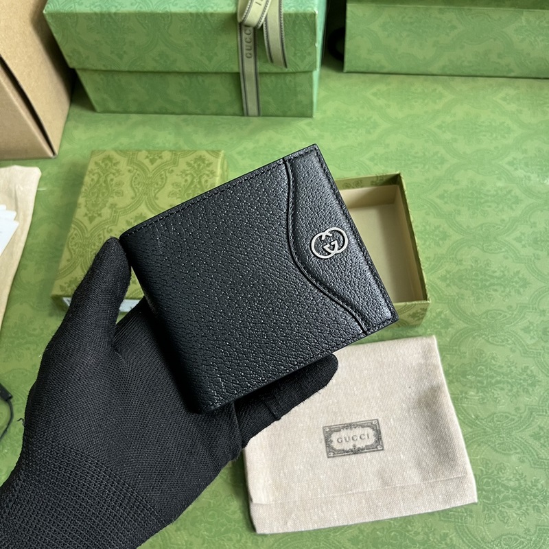Gucci Double G reteszelhető, két összecsukható fekete bőr pénztárca