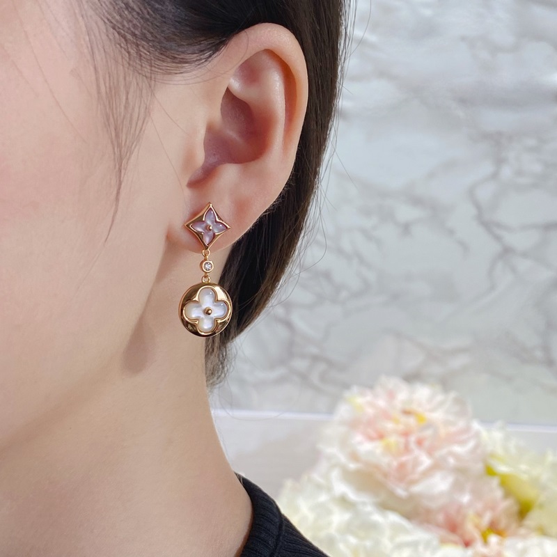 LV High Jewelry Flower Studs Rose Gold&Diamond, White Pearl