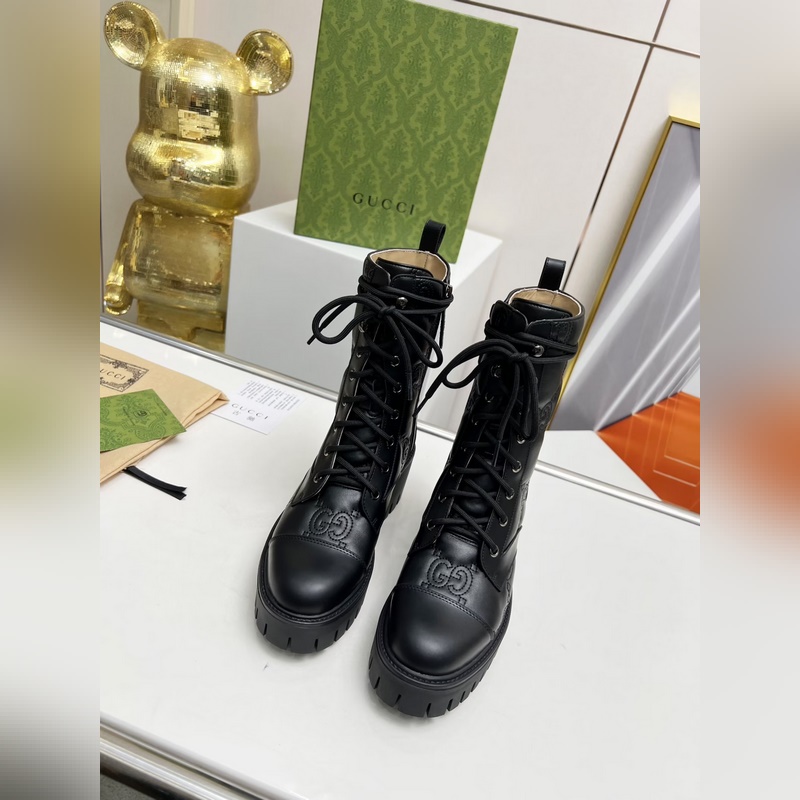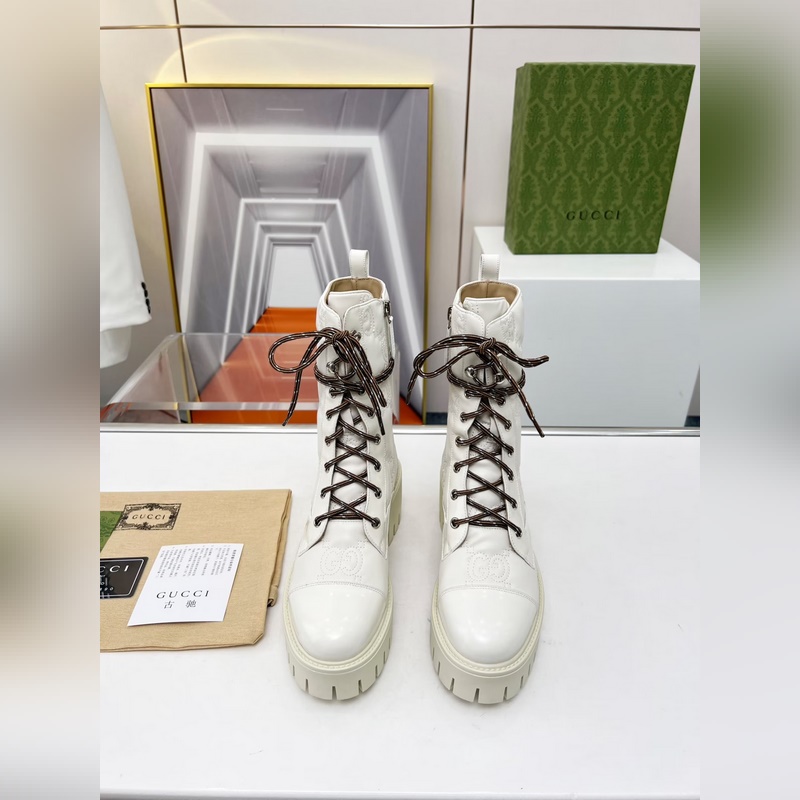 GUCCI őszi/téli dupla G hímzett fűzős 8 hüvelykes csizma fényes és matt