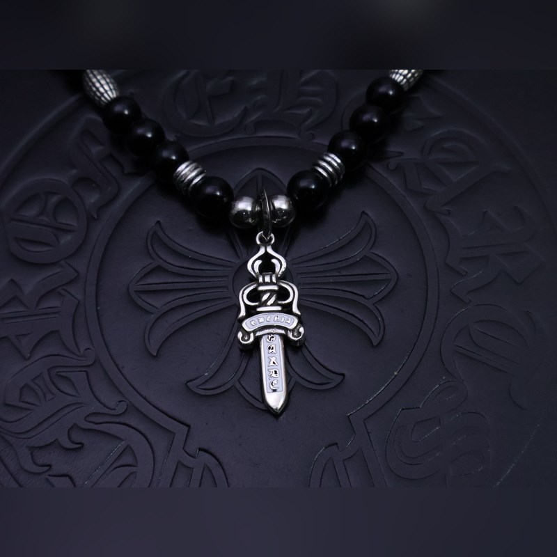 Krómozott szívek fekete gyöngyös nyaklánc kézzel készített kereszt medállal, vintage hip-hop punk stílusban