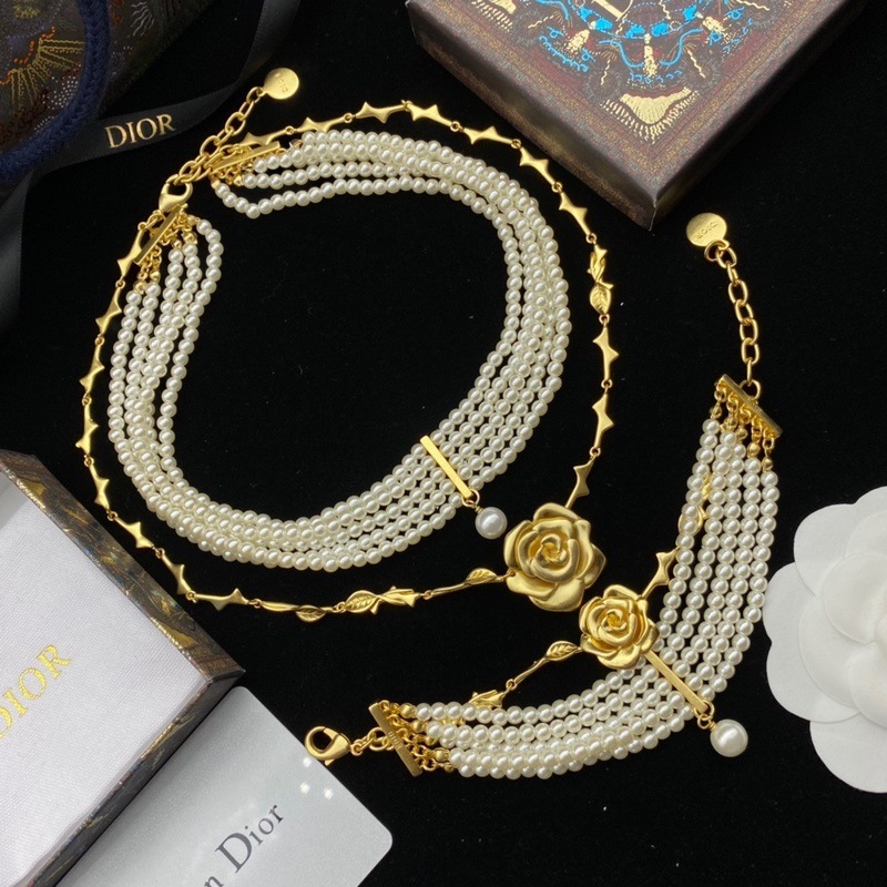 Dior CD Pearl Rose nyaklánc Elegáns virágmintás