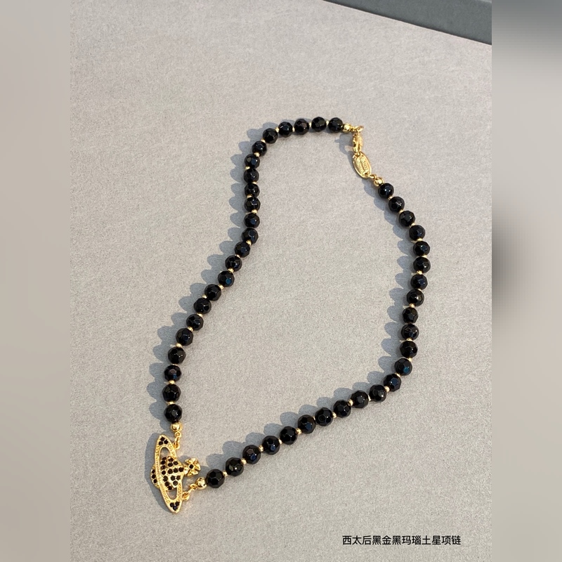 Vivienne Westwood Saturn nyaklánc fekete ónix Elegáns kivitelezés