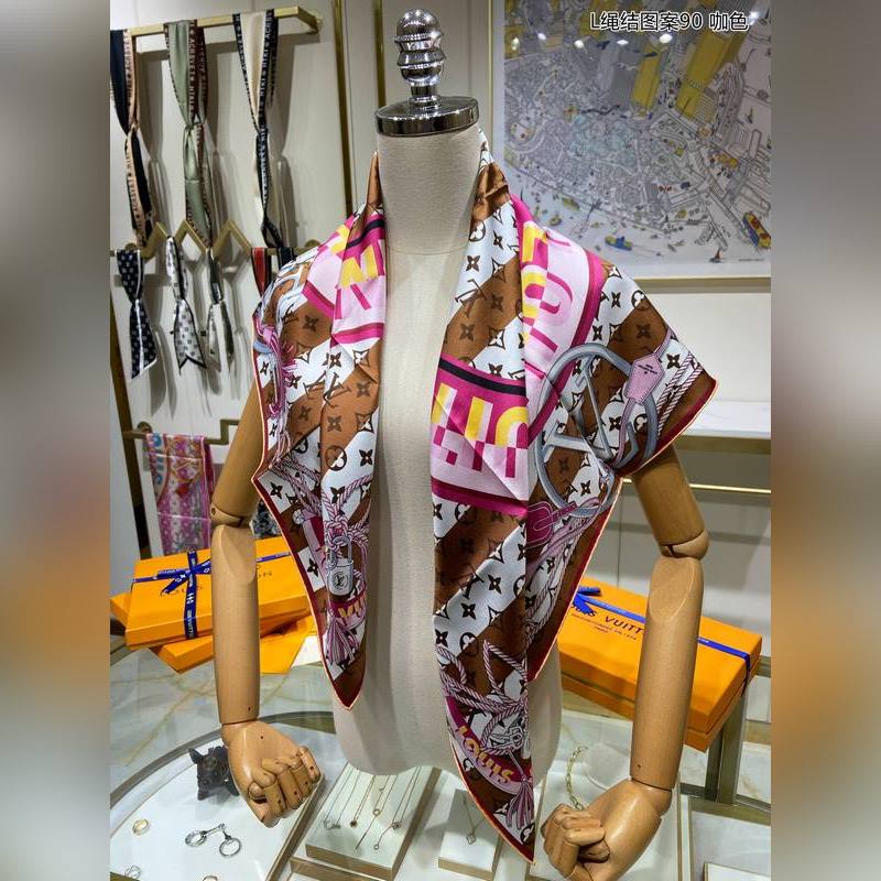LV L Knot Pattern 90 Selyemsál 100% Prémium Twill Selyem