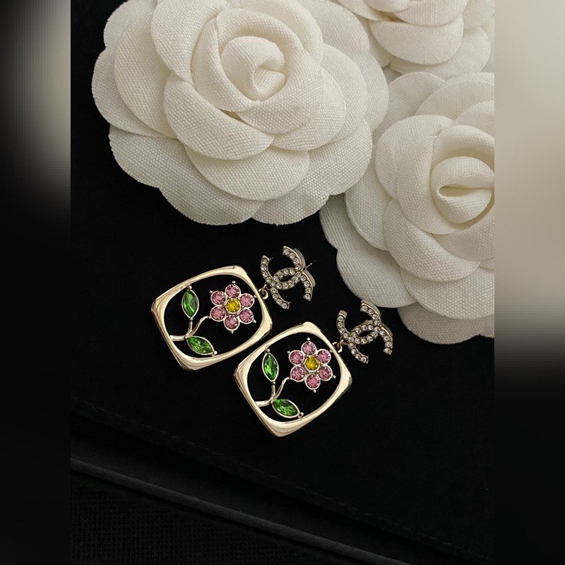 CHANEL Camellia kristály virágos fülbevaló arany híresség stílusban