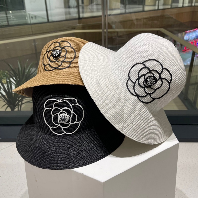 Chanel 2023 Camellia szőtt szalmakalap elegáns nyaraláshoz elengedhetetlen