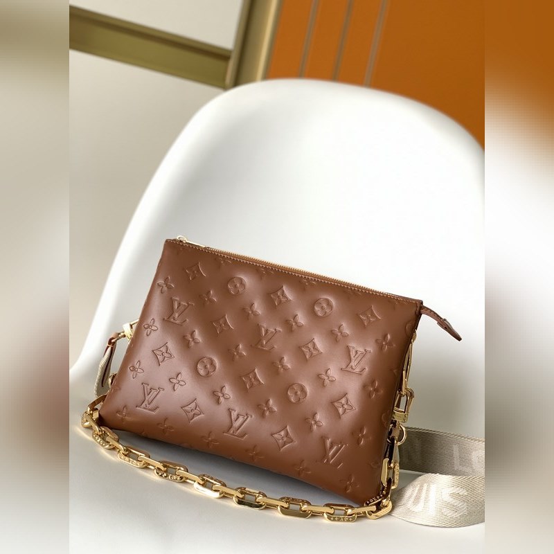 LV Coussin M57791 kis replika táska lánc válltáska replika mustársárga színben