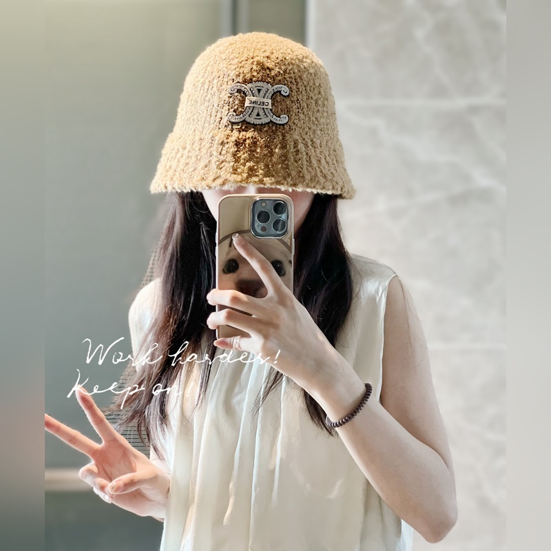 CELINE 2023 őszi/téli plüss kötött halászkalap porzsákkal, összecsukható napvédelemmel