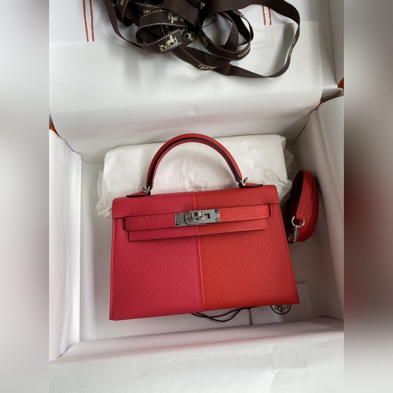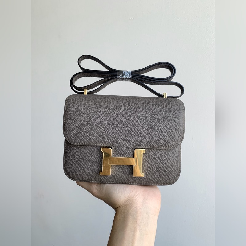 Hermès Epsom Kelly mini replikatáska második generációs Taupe szürke ezüst arany hardver