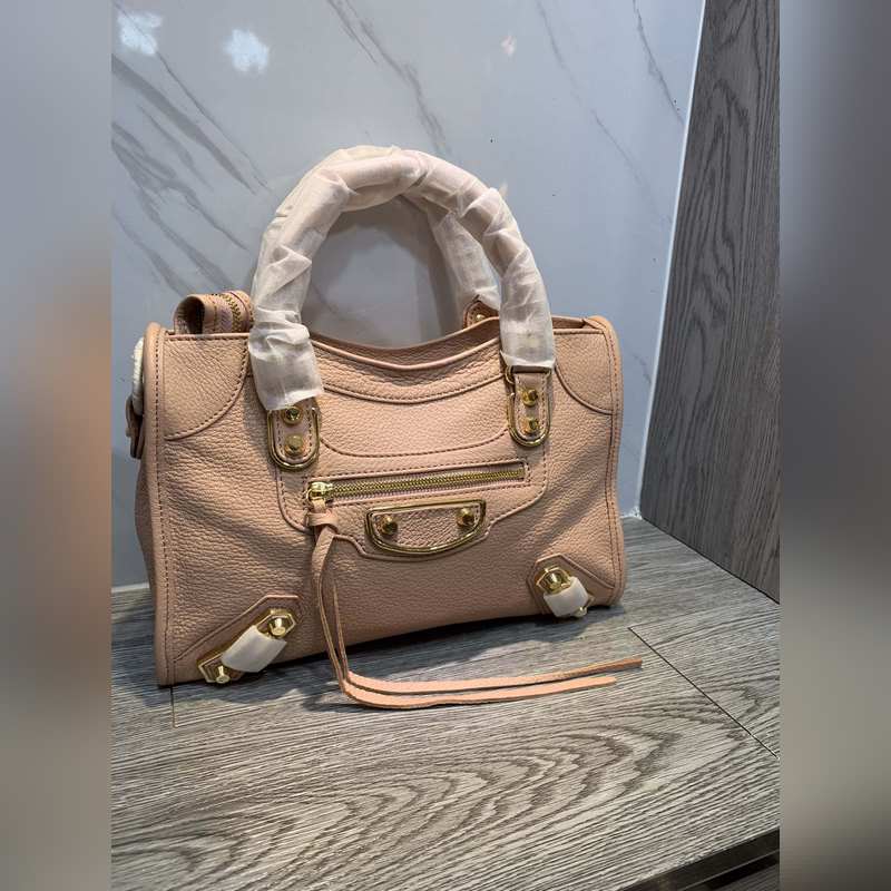 Balenciaga kecskebőr motorkerékpár replika táska közepes rózsaszín, ezüst szegecsekkel 30 cm BLSJ961