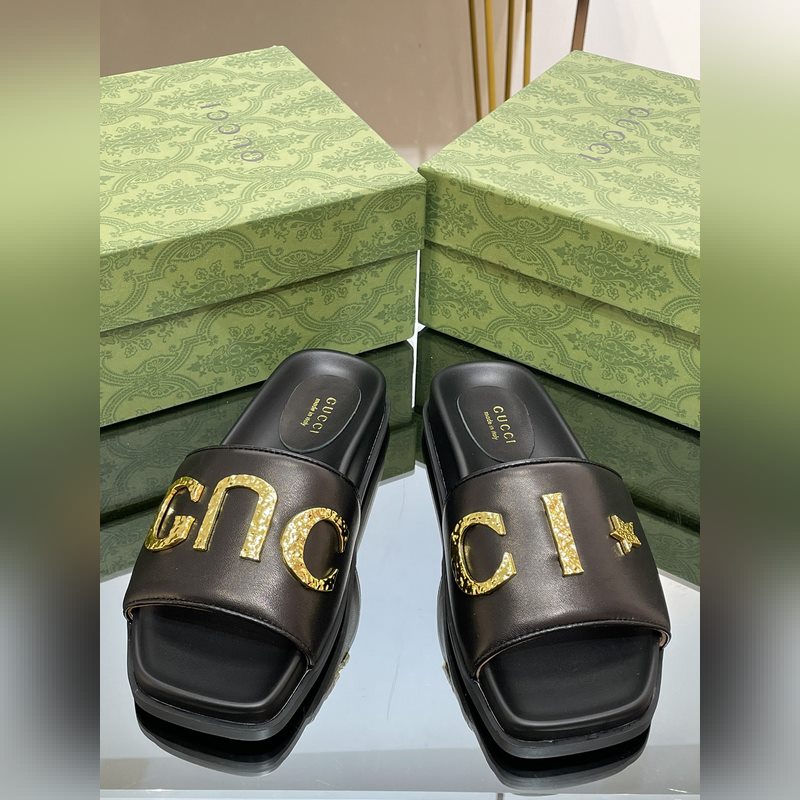 2023-as Gucci kiváló minőségű vastag talpú csúszószandál logócsattal