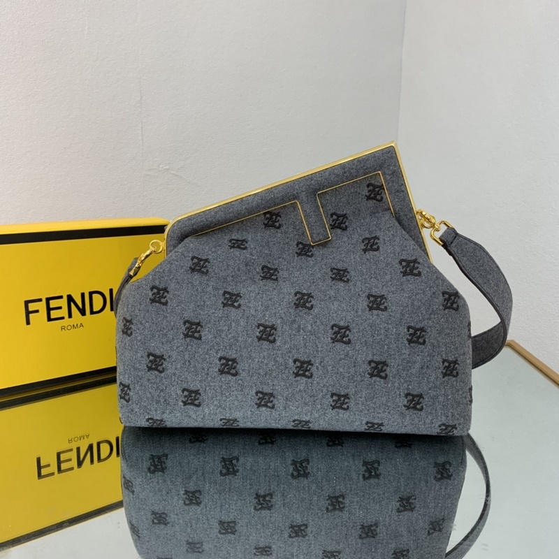 FENDI szürke szőrme nagy kézitáska minőségi szövettel