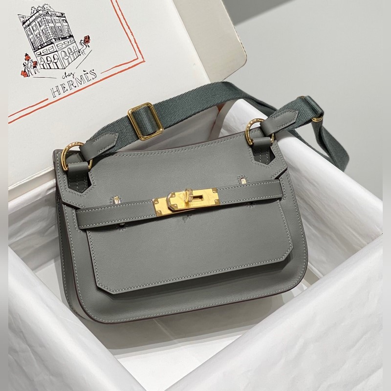 Hermes Mini Kelly Pouchette kézitáska elefántszürke arany és ezüst hardverrel