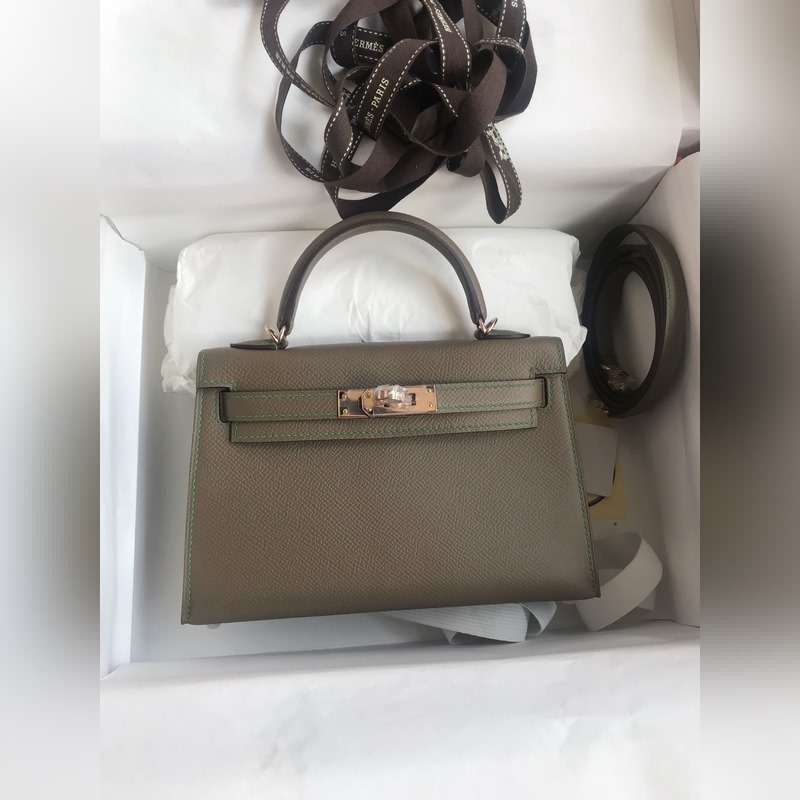 Kézzel varrott Hermes Mini Kelly 19 cm-es Epsom bőr elefántszürke