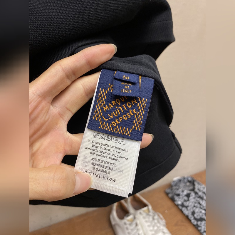 1V Louis 2024FW piké szövet, a 2024 tavaszi/nyári kifutó dandy stílusát értelmezve. A mellkason található 1V-os folt strasszokkal és gyöngyökkel hímzett, a hátoldalon található Marque 1.Vuitton hímzett folt pedig divatos árnyalatot kölcsönözhet a hétköznapi megjelenésnek.