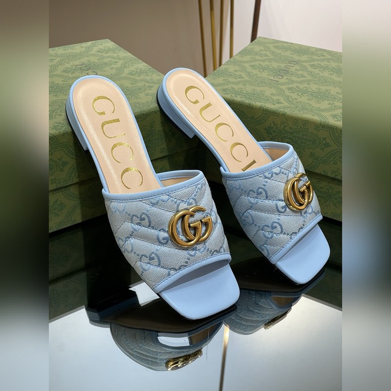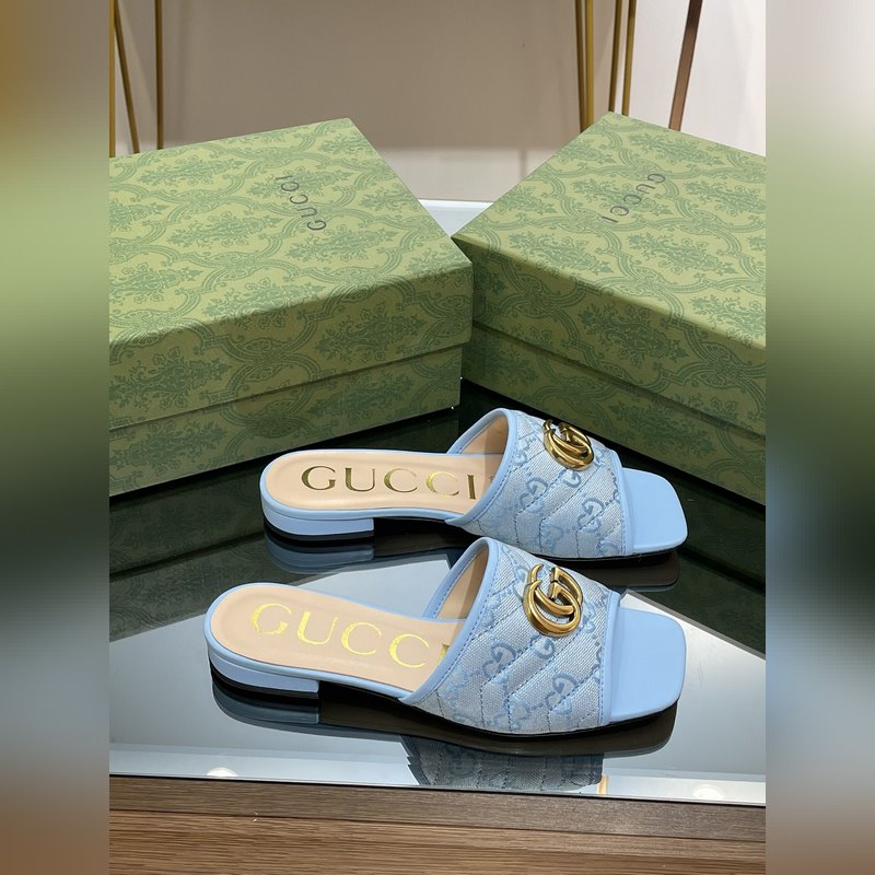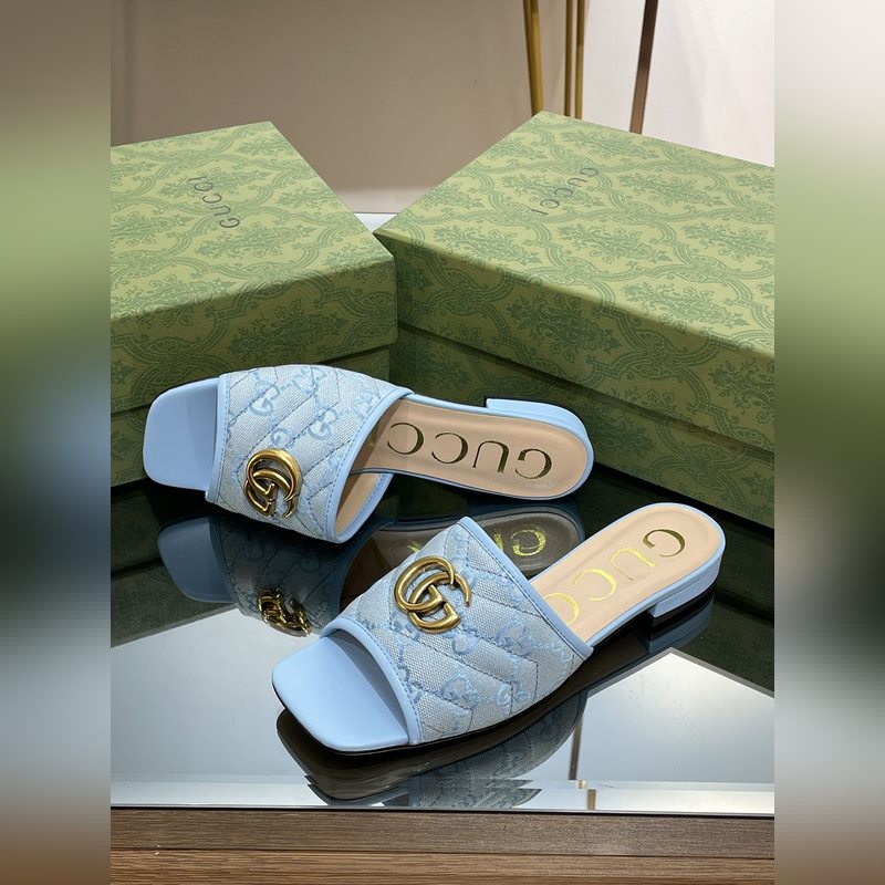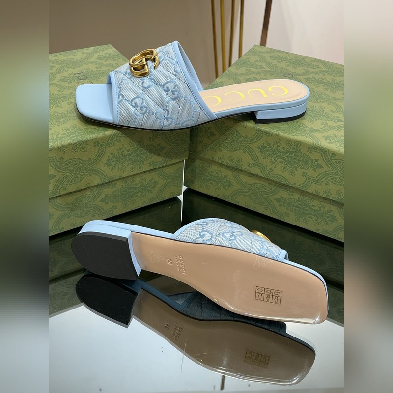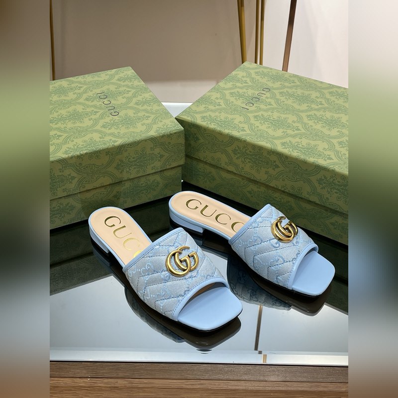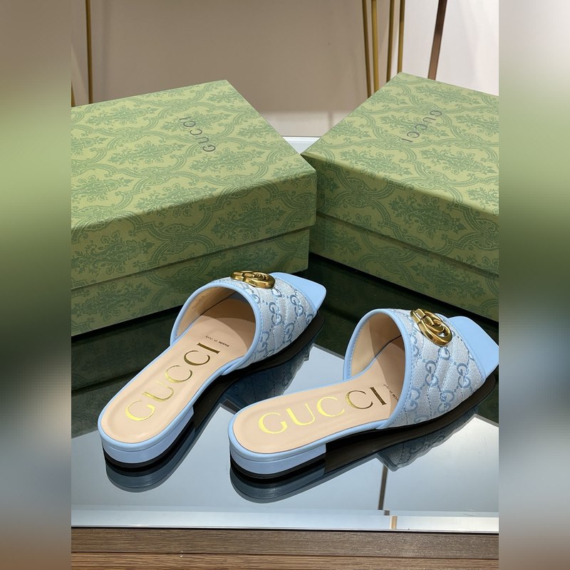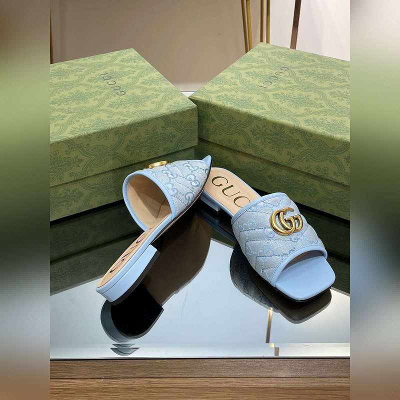 2023-as Gucci Double G 5D hímzett nyitott orrú csúszószandál