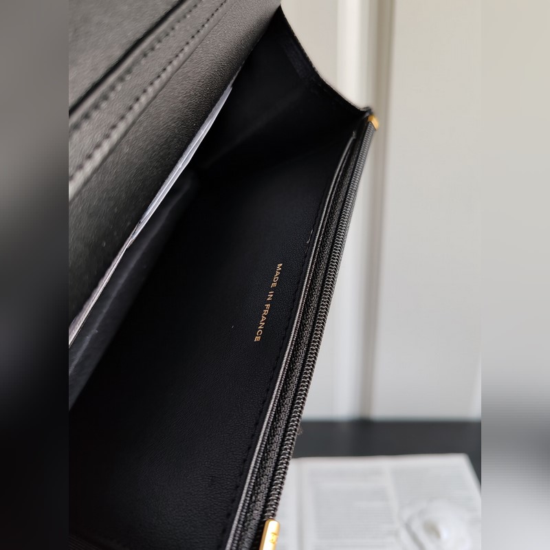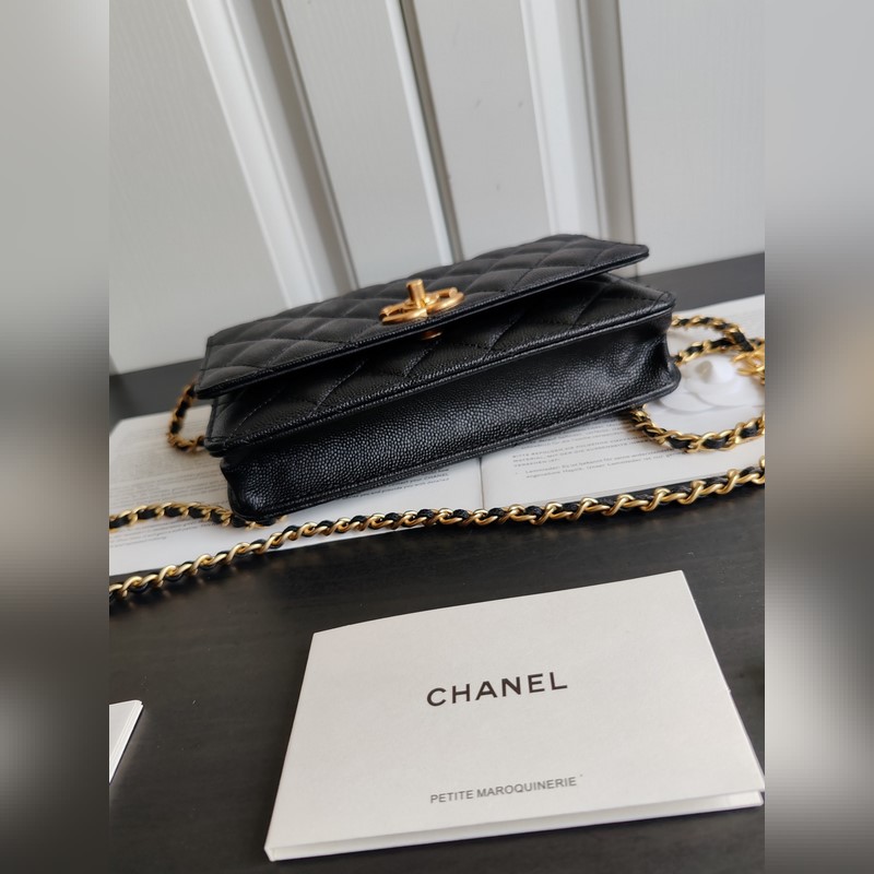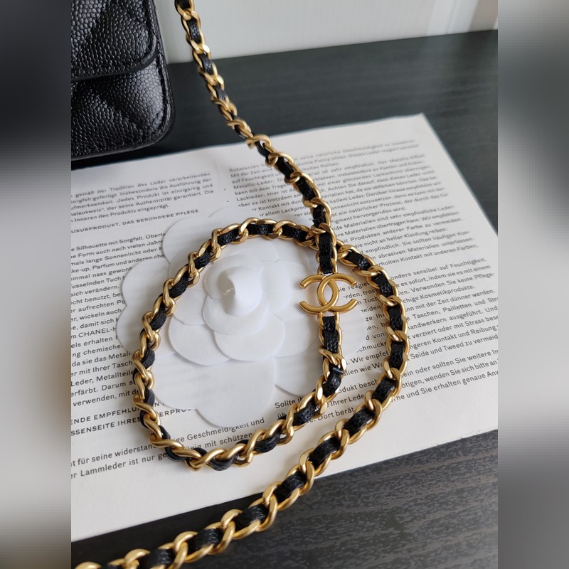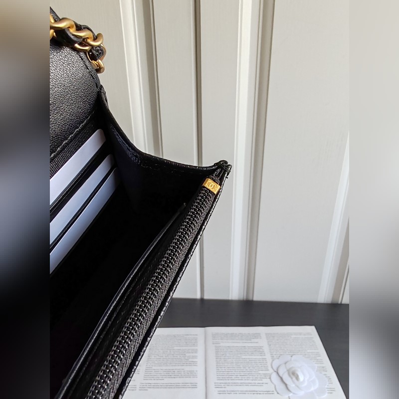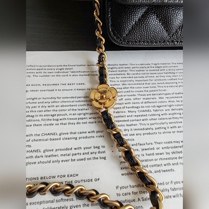 23K Limited Edition Camellia Woc Különféle klasszikus elemekkel rendelkezik: fekete-fehér, marhabőr, forgó csat, kamélia dizájn, retro fém szín, fém CC a láncon, két mobiltelefon fér el, praktikus és gyönyörű 3580-as méret: 19*13*3,5cm