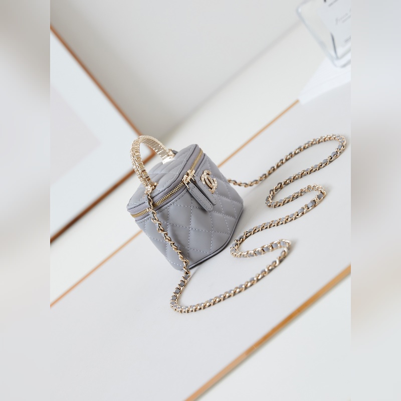 24B limitált kiadású gyémánt fogantyús hosszú dobozos kozmetikai crossbody táska gyémánt fogantyúval báránybőr fém hardverrel, a fogantyú kifinomult és nemes, jól mutat kézben, keresztben vagy egy vállon hordva. Nagyon szép