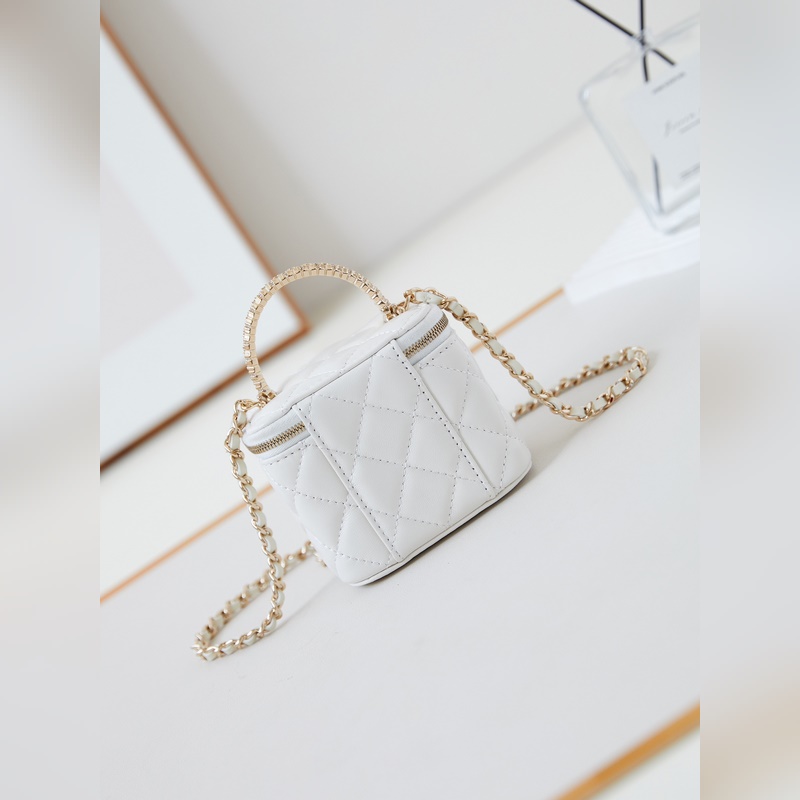 24B limitált kiadású gyémánt fogantyús hosszú dobozos kozmetikai crossbody táska gyémánt fogantyúval báránybőr fém hardverrel, a fogantyú kifinomult és nemes, jól mutat kézben, keresztben vagy egy vállon hordva. Nagyon szép