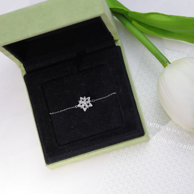 Sterling ezüst virág karkötő 925055VCA virág karkötő S925 sterling ezüst anyag logóval galvanizált 18 karátos fehér arany Kifulladásig gyönyörű virág karkötő vca Fülbevalók Szuper legyőzhetetlen dicséret egy önálló modellnek, nővérek és nővérek mind hordják