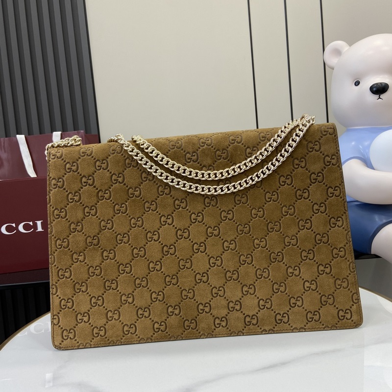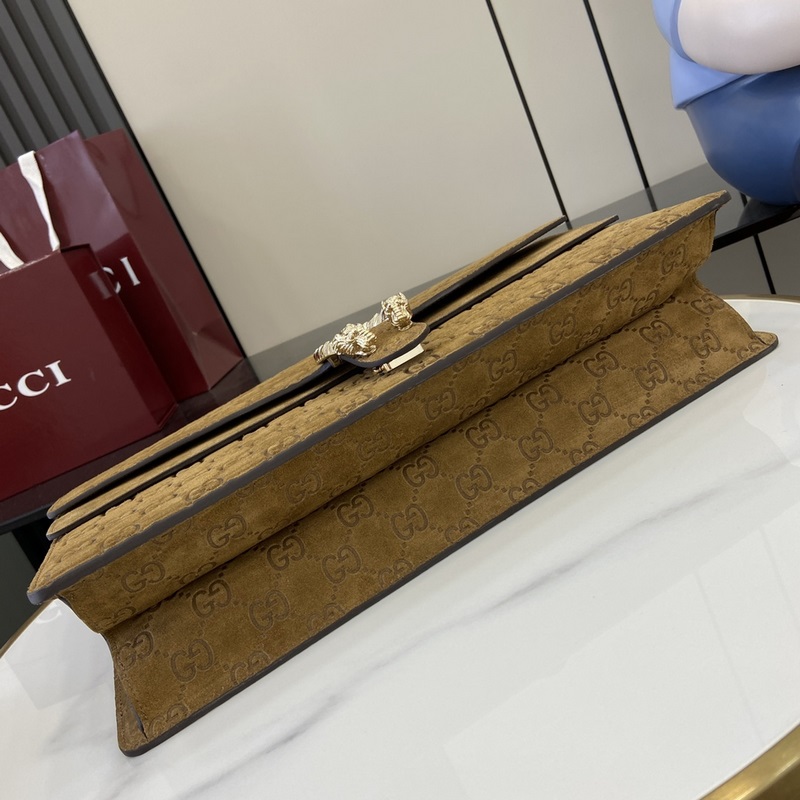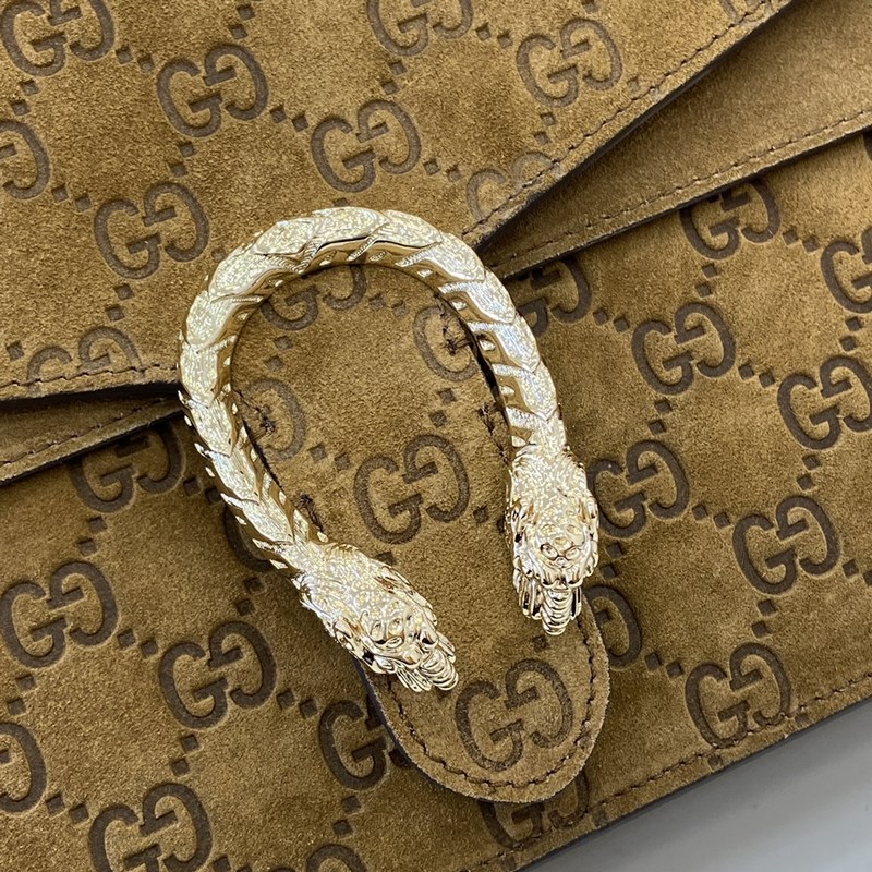 Új termék, a Gucci kreatív igazgatója, Sabato de Sarno újraalkotja a klasszikus Dionysus sorozatú nagy válltáskát. Ez a kézitáska barna GG velúr anyagból készült, tigrisfejes zárral és füles kivitelben. A csúszólánc szabadon állítható a különböző stílusok kialakításához.