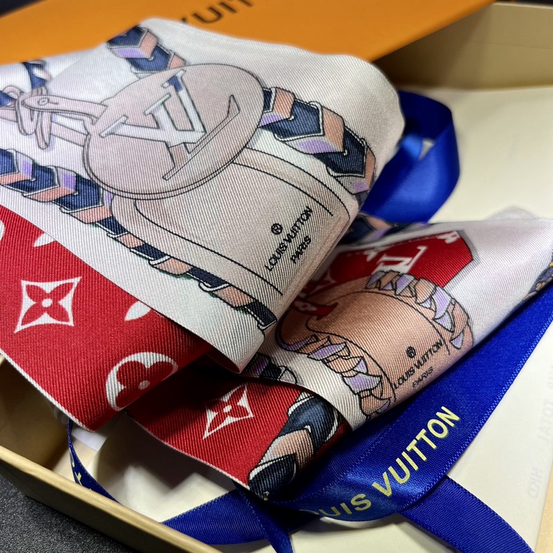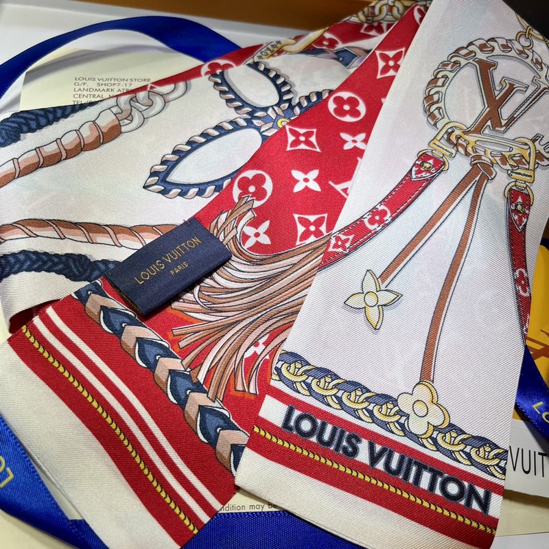 A selyem kétrétegű szalag mindkét oldalán hordható. A Tribute To selyem fejpánt az Alma, Seedy, Bo te Chaeau és Dauhine táskákat hozza a középpontba bonyolult ecsetvonásokkal. Az egész Monogram minta és a márka logója kiemeli a Louis Vuitton elegáns stílusát