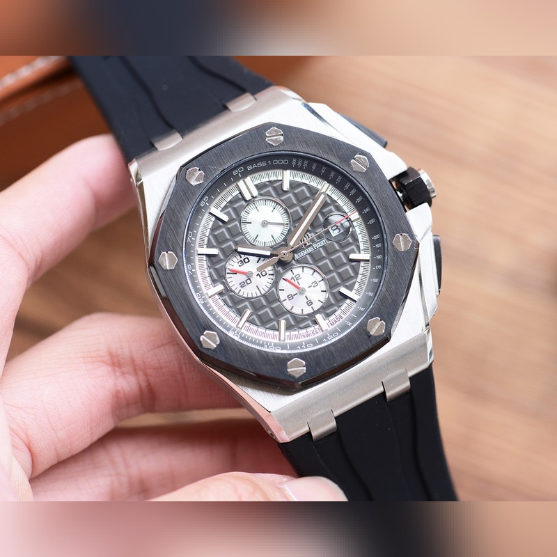 Audemars Piguet Royal Oak Offshore sorozat, automata tekercselésű mechanikus szerkezet, ultra üvegmentes acélház, 31 gh acél 100 méter szuper vízálló (búvárkodásra és úszásra alkalmas), 44 mm óraátmérő, 14,4 mm vastag, eredetinek megfelelő, számlap Audemars Piguet exkluzív “Méga Tapisserie” szuper-nagy kockás díszítéssel, erős háromdimenziós érzékkel, szuper fényes funkcióval továbbfejlesztve, a teljes ház szerkezete lágy, a pántja tökéletesen CNC megmunkálású összhangban az eredetivel, amely a férfi uralkodó, a Royal Oak Offshore továbbfejlesztett változatát mutatja, kérjük, keresse az exkluzív minőséget