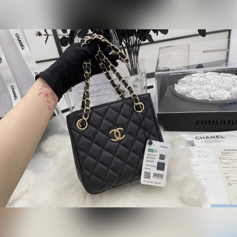 AS3176 Chanel 2022 Tavasz és Nyár Legújabb Tote Bucket Bag raktáron Marhabőr golyó mintás kaviár sorozat design Egyszerű és elegáns Klasszikus és hétköznapi Kis táska, de nagy kapacitású Arany hardver kiegészítők Kézben vagy vállon átlósan hordható Méret: 16X15X9cm