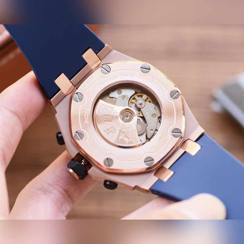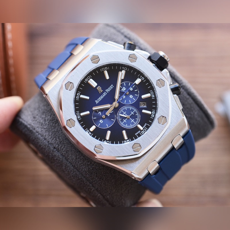 Audemars Piguet Royal Oak Offshore sorozat tükröződésmentes ásványi üveg Mérete 42mm*14mm, vízálló szalag AP eredeti csapcsattal Felszerelve eredeti 3126-os rotor replikával Teljesen automatikus mechanikus mozgás Nyolcszögű szálcsiszolt acélház, új számlap füstös gradiens hatással, továbbfejlesztett szuper fényes vízálló 100 méteres funkció a piacon Menő és uralkodó Különböző kemény fickó forró ajánlás