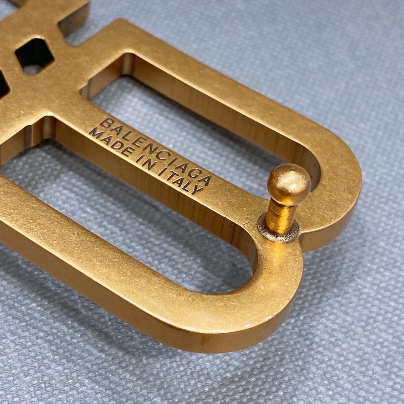 A Balenciaga BB öv feje tiszta rézből készült, felülete pedig aranyozott. Nem csillogó arany, hanem elegáns arany. 75-100 euró