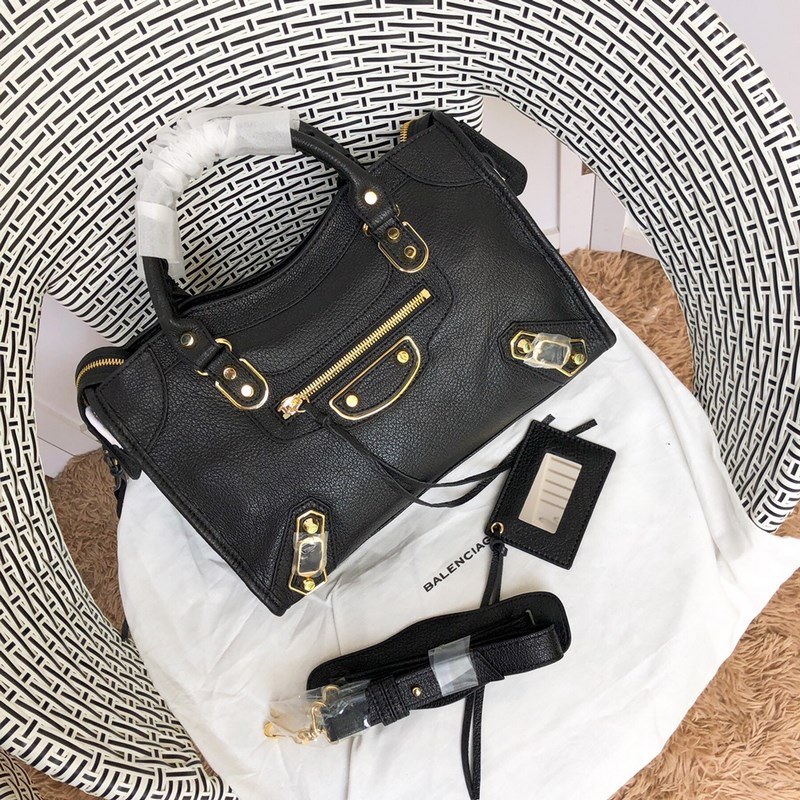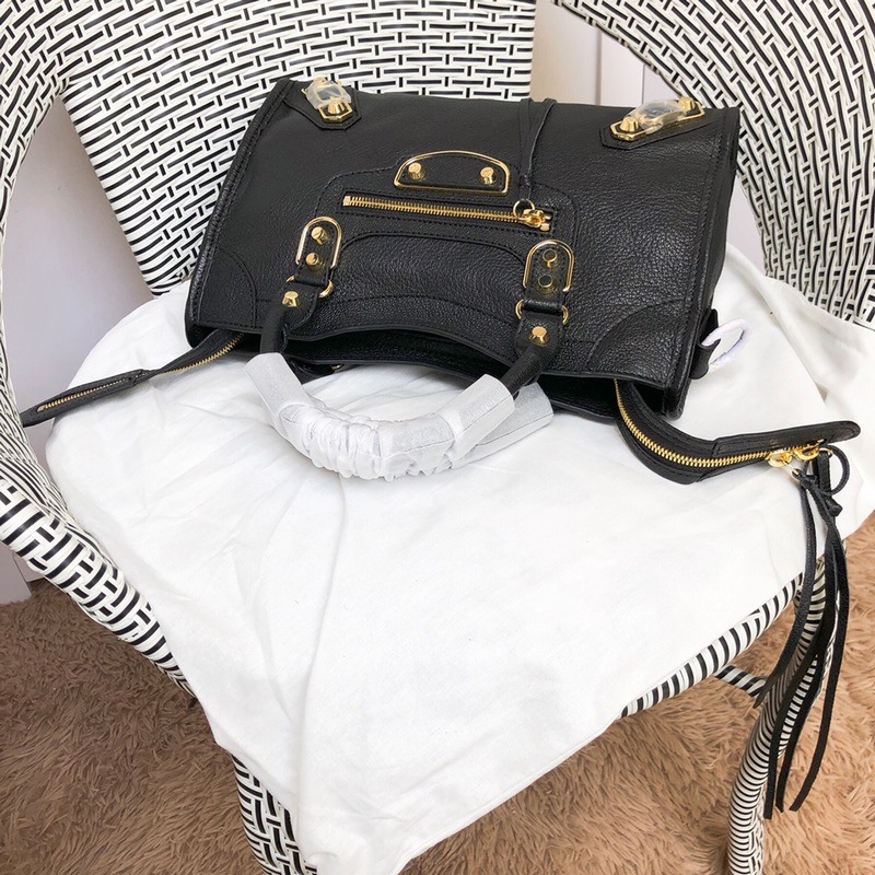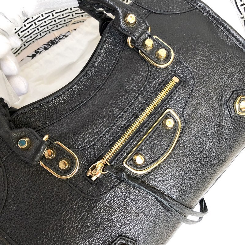Balenciaga motoros táska – kecskebőr arany szegecsekkel, fekete