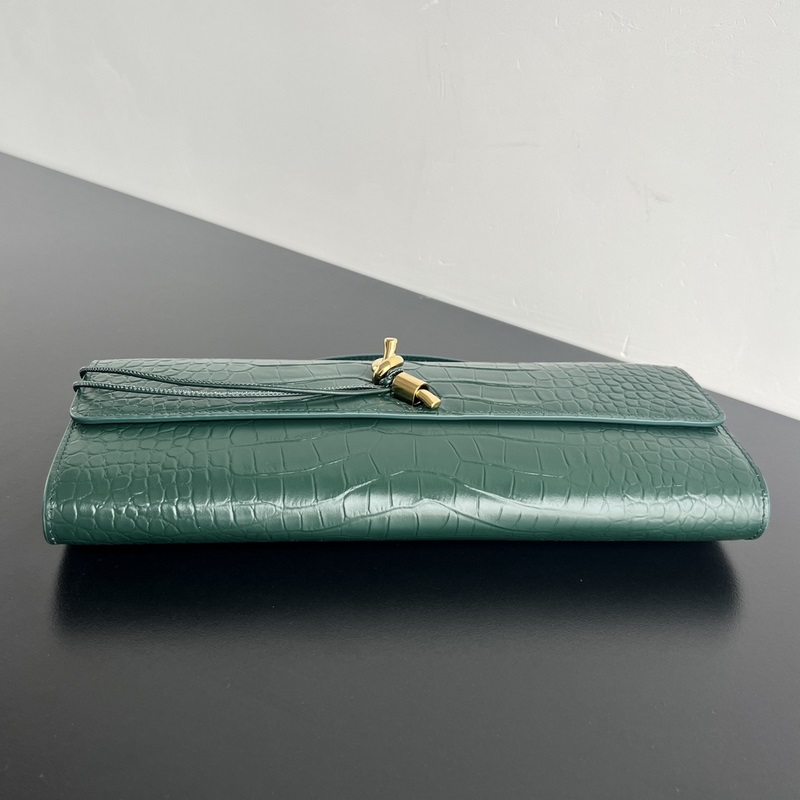 #Bv Krokodilmintás tengelykapcsoló hosszú kuplung 741511 fogantyúval van felszerelve. A kuplung kialakítása a kifinomult és csúcsminőségű ízlést testesíti meg. Kiváló kivitelezésű, krokodilmintás intreccio báránybőrt használ. Kézben tartható, vagy hónalj alá bújtatható. Fém csomókkal díszített, temperamentumot és nemességet sugároz. Kártyanyílásokkal és belső rekeszekkel van felszerelve. Jó társ a mindennapi életedben. Akár a vörös szőnyegen sétál, akár egy vacsorán vesz részt, egyedi varázst ad Önnek.
