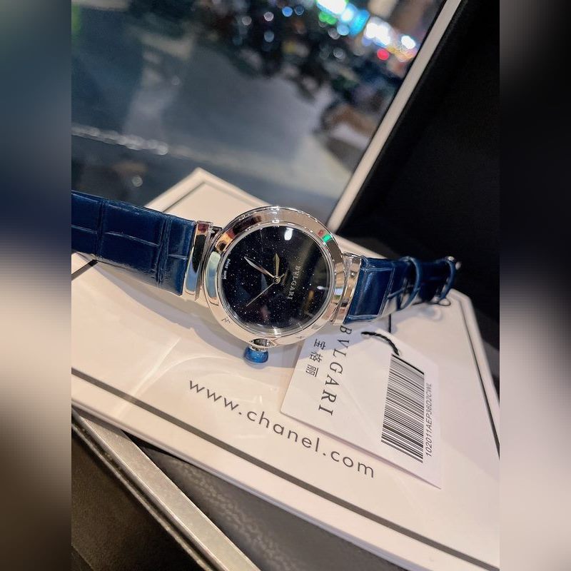 A Bulgari LVCEA sorozat legkülönlegesebb tulajdonsága a kék kristályhomok Aventurin felhasználása a számlap elkészítéséhez, amelyhez egy gyönyörű gyémánttal kirakott előlap párosul, és olyan romantikus vizuális hatást kelt, mint a csillagos ég. Importált kvarc szerkezet, íves zafírüveg tükör