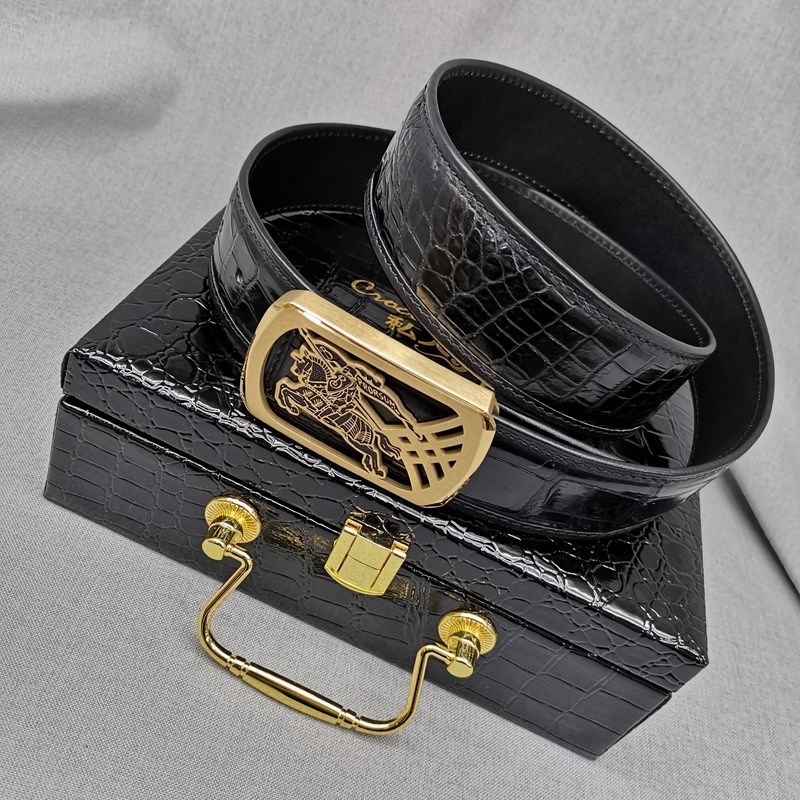 Burberry krokodilbőr fekete csontbőr hasa varráslemez nélküli csatszíj