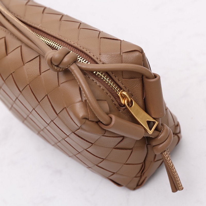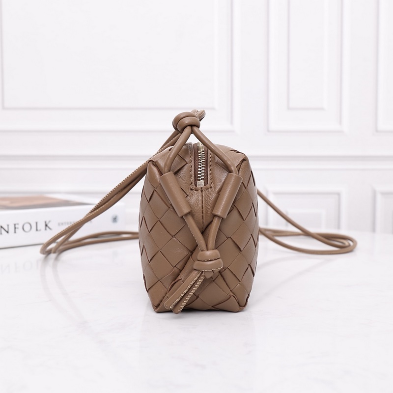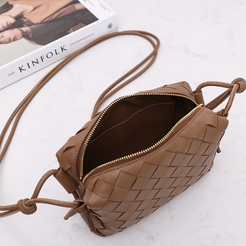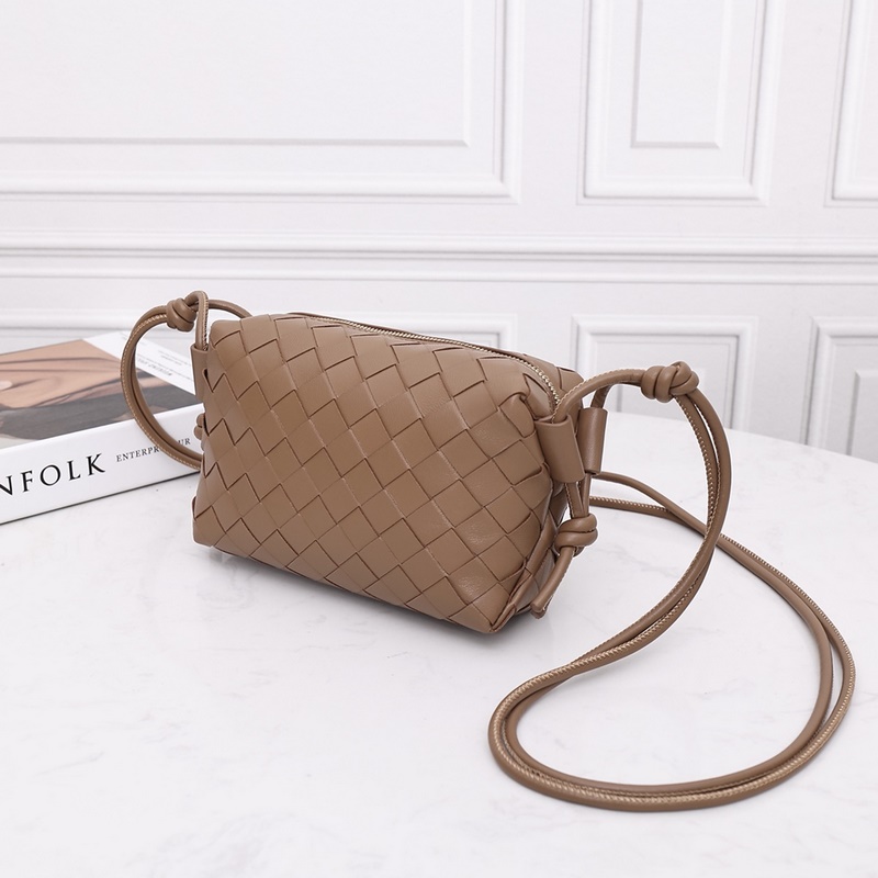 BV új modell, kis crossbody táska. Mini crossbody kézitáska kézzel szőtt Intrecciato báránybőrből, állítható bőr húzózsinórral, egyetlen nyitott belső zsebbel, aranyos és menő hátul. Méret: 17*10*6CM, Modell: 8809# Karamell