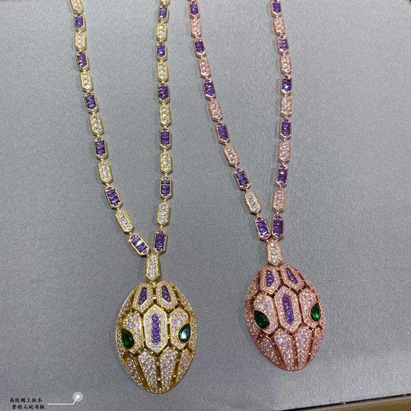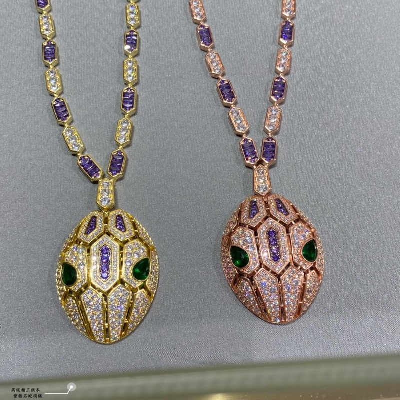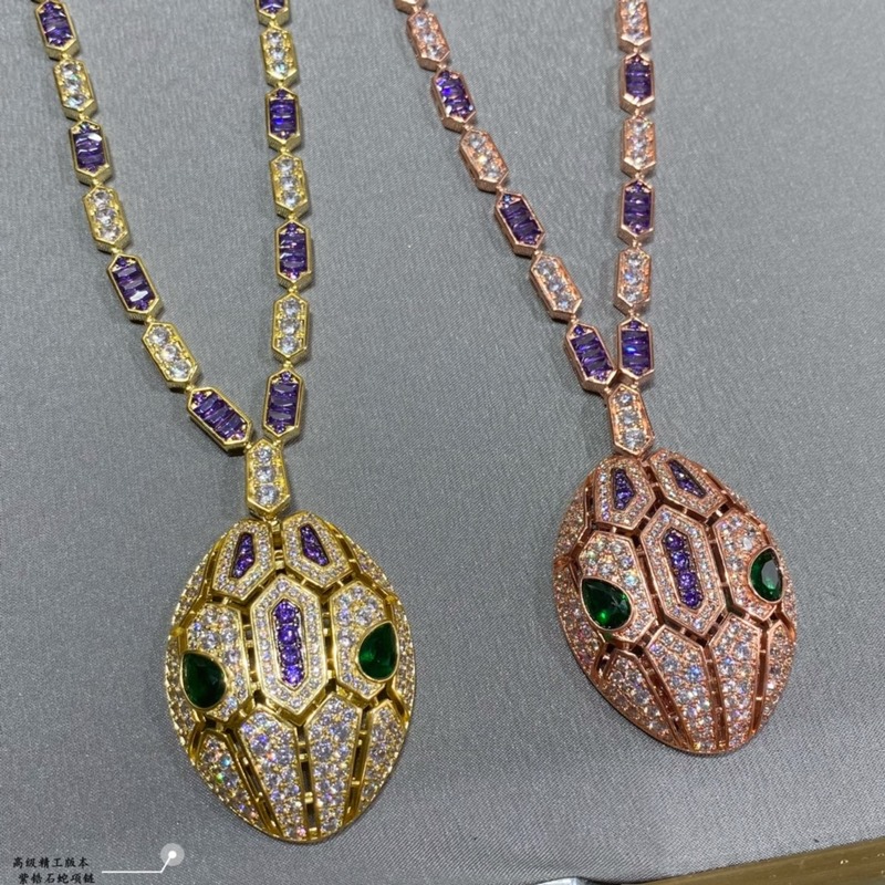 BVLGARI Lila cirkónia kígyó nyaklánc 5140300 Kiváló minőség