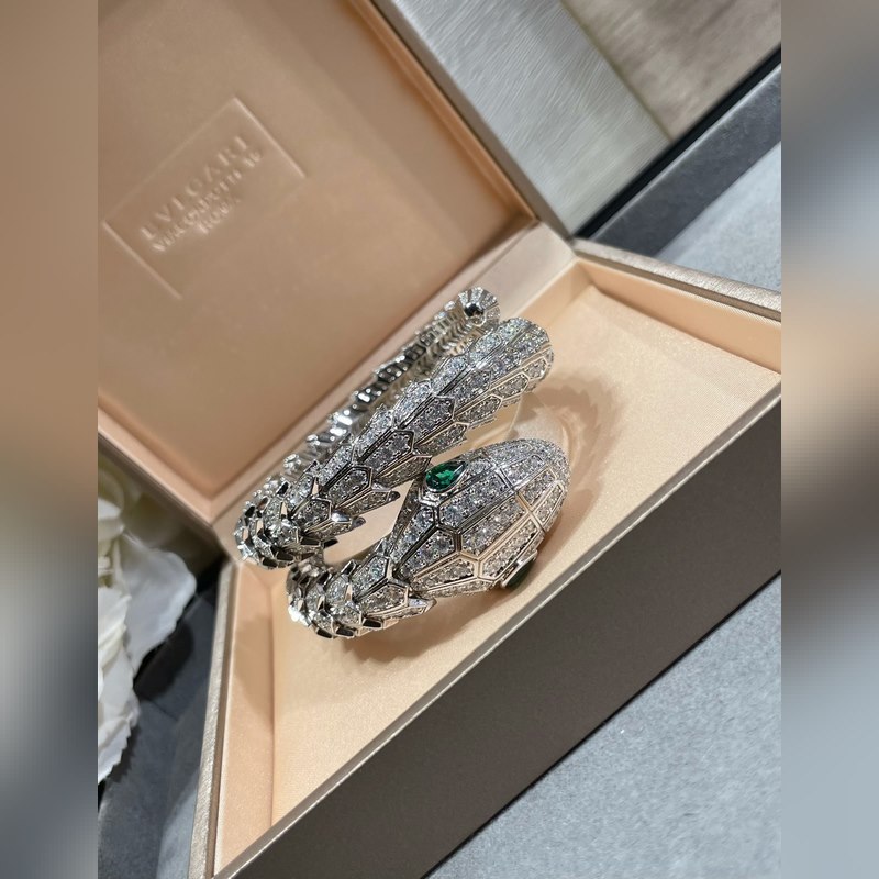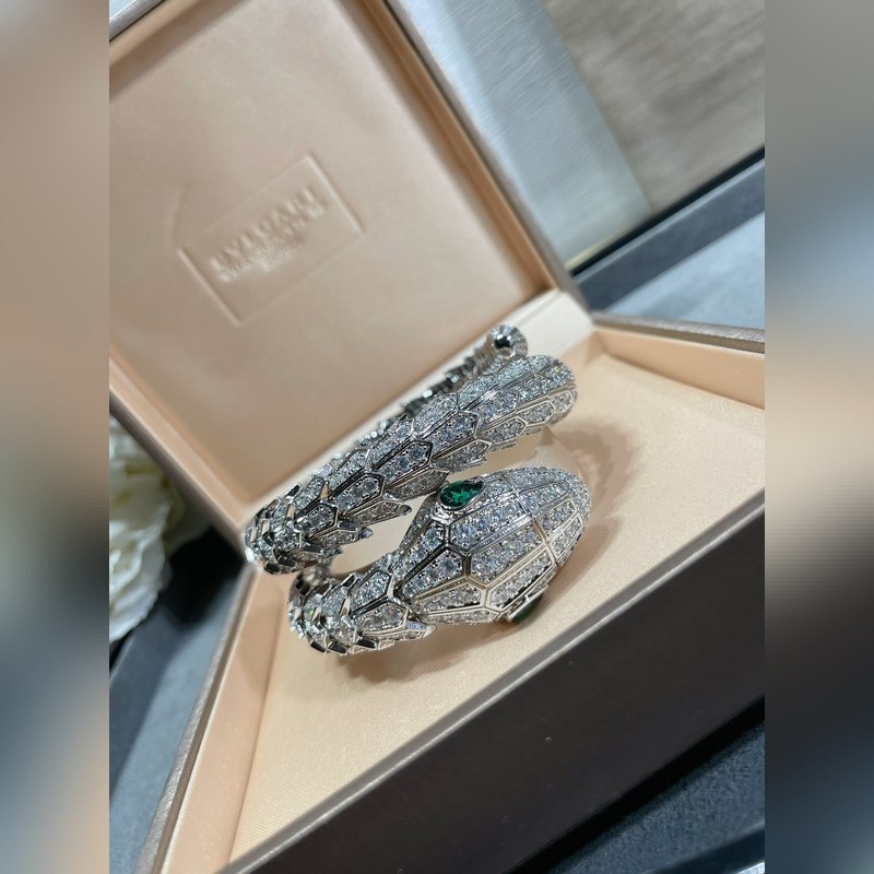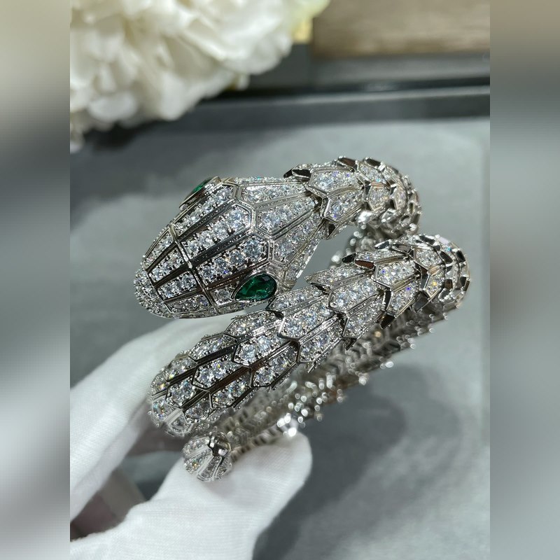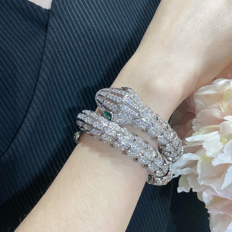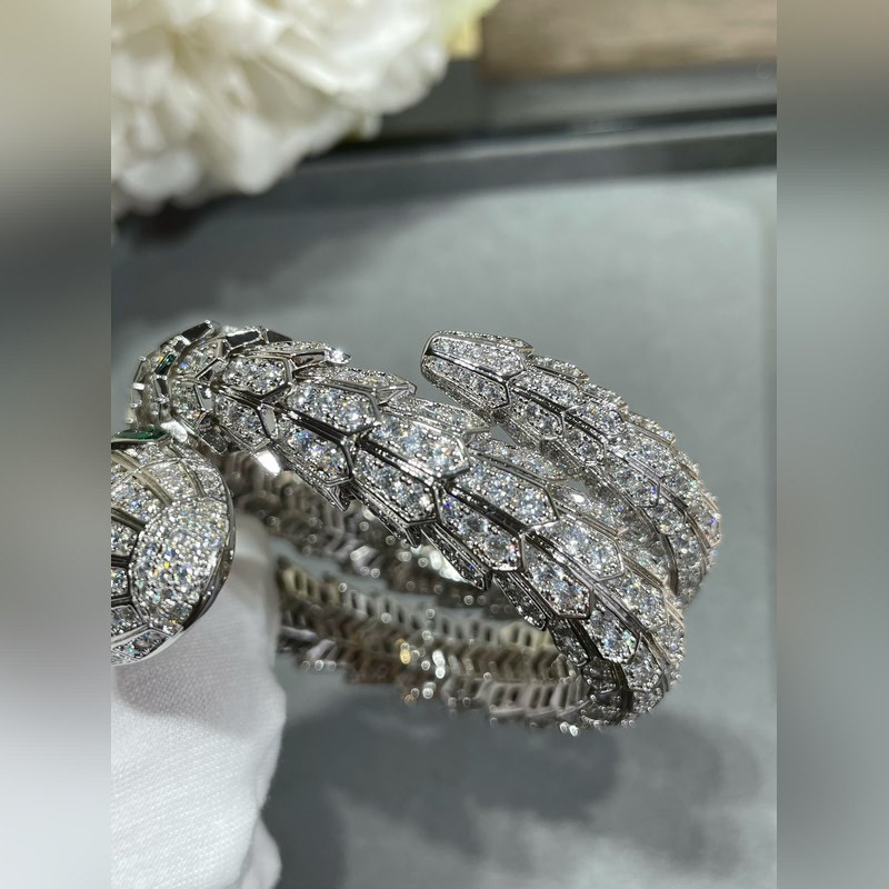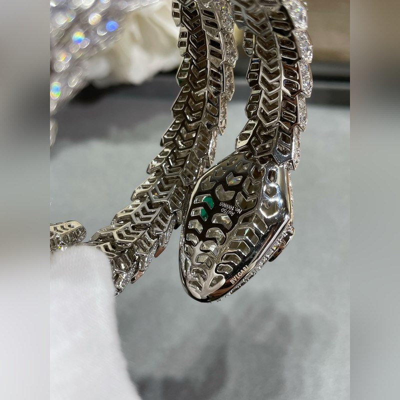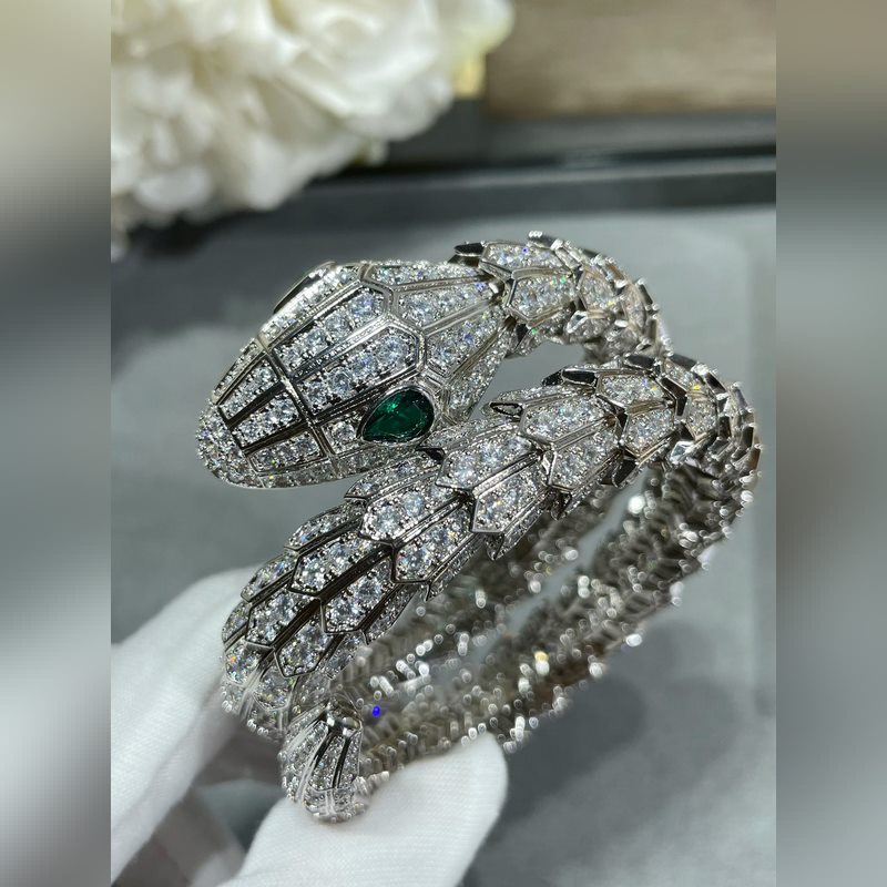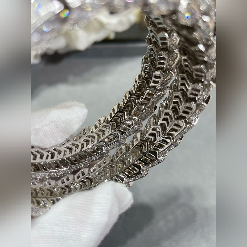 Anyag: 1400520 Bulgari nagy, három körből készült, kiváló minőségű, teljes gyémánt kígyó karkötő importált cirkon berakással, szabad szemmel is jól látható minőség