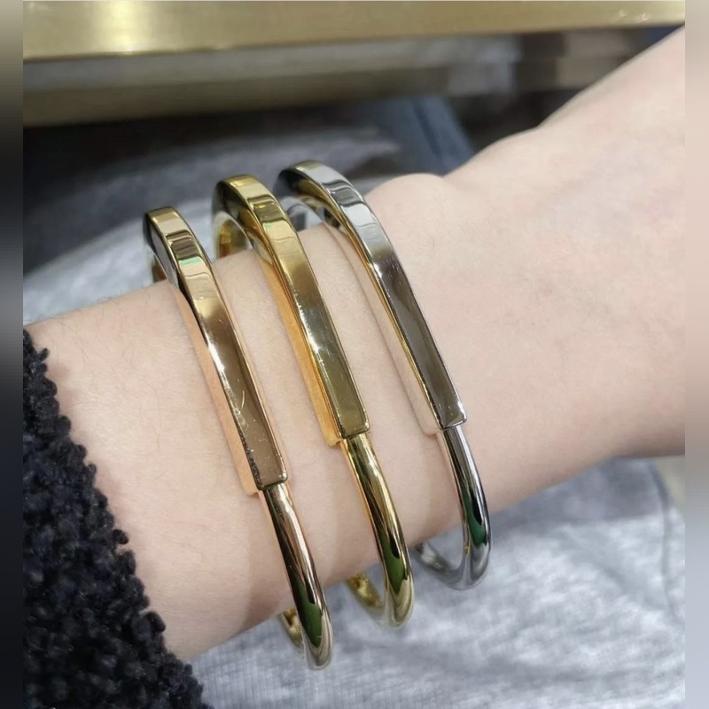C343 Tiffany Tiffany 23c új, hot debütáló U-alakú zár sima karkötő európai és amerikai stílusban mindenkinek szuper finom kidolgozással kell rendelkeznie V arany anyag galvanizált 18k arany allergia kezelés rózsa arany fehér arany sárga arany három szín karkötő 125220